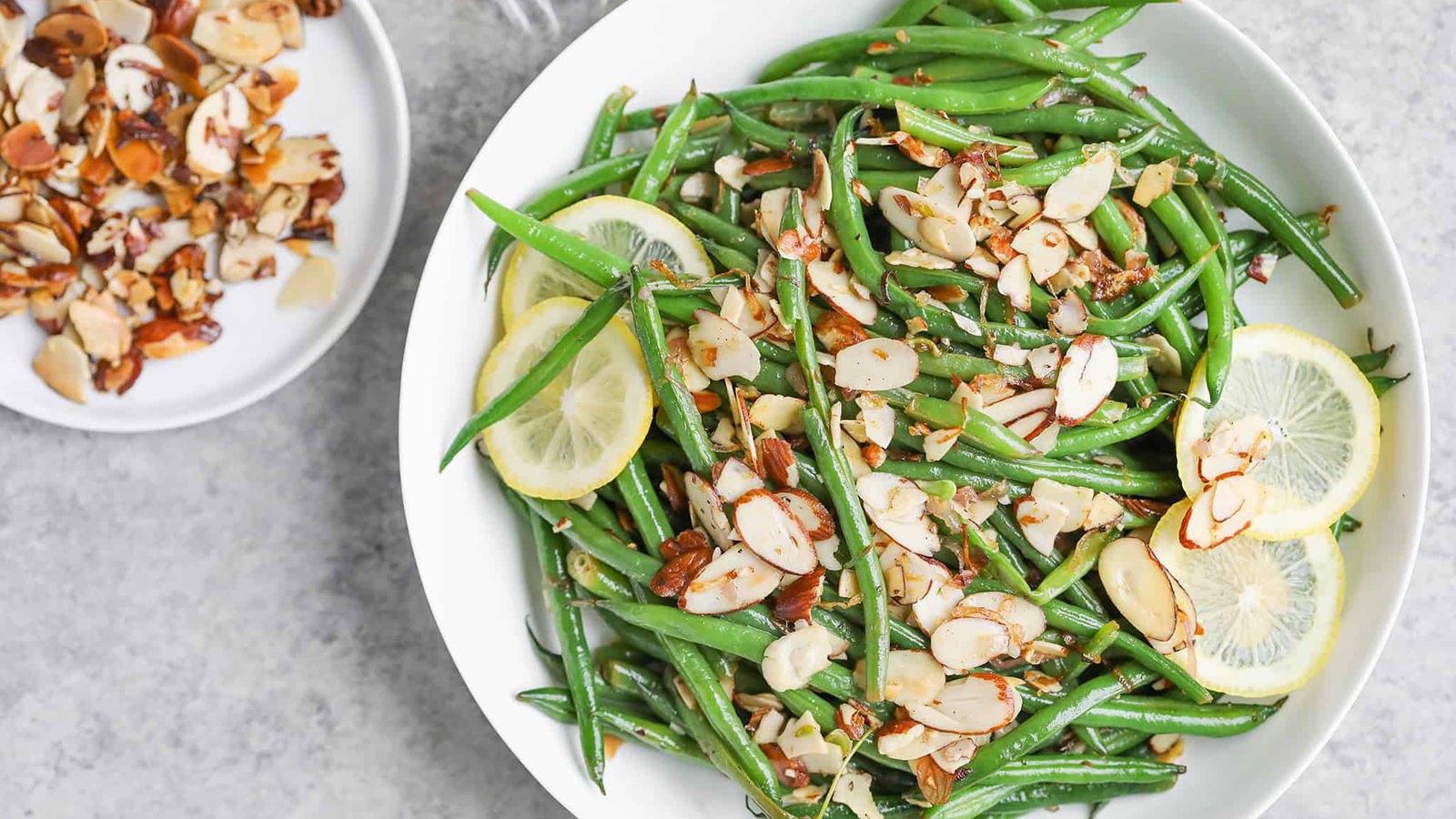 These green beans almodine are so easy, you almost don’t need a recipe! Buttery green beans with shallots, toasted sliced almonds, and lemon. An elegant side dish for any meal, and a crisp vegetable offering that pairs with any other rich side.