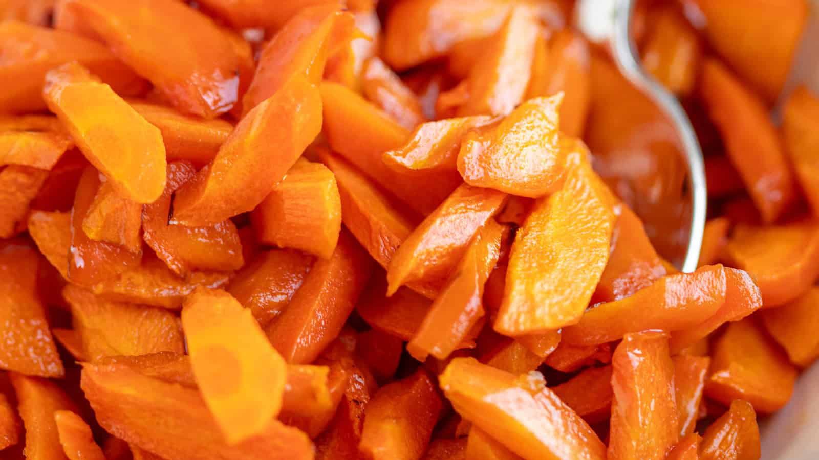 This glazed carrot recipe uses maple syrup in place of traditional brown sugar and uses roughly half of the amount called for in most other dishes.