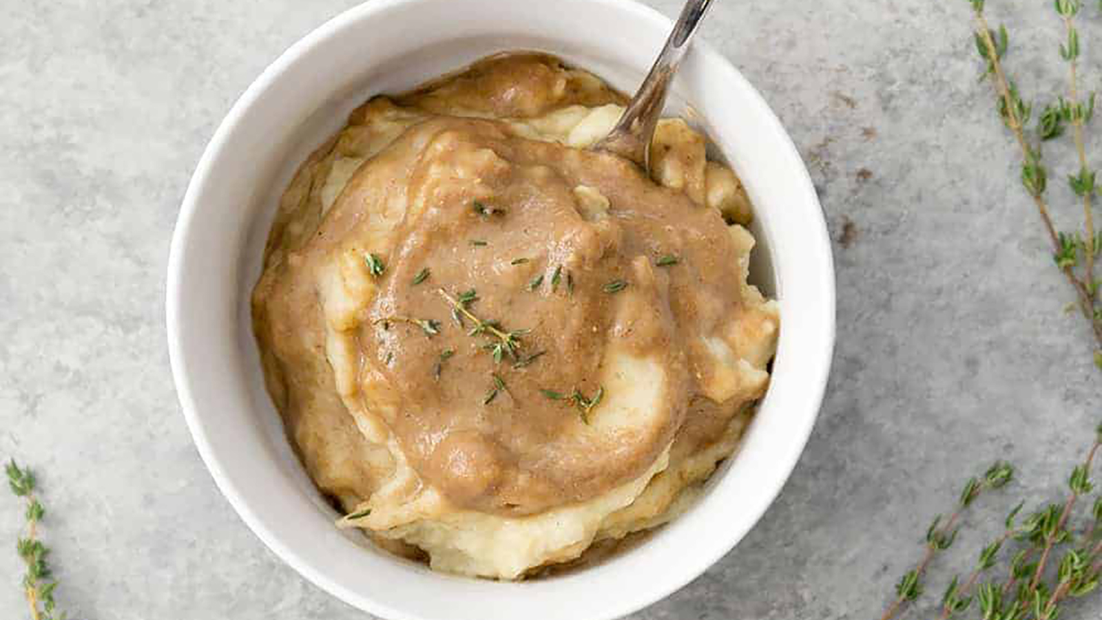 This rich, savory mushroom sauce, enhanced with a splash of balsamic vinegar, can easily stand in for gravy. It’s packed with plenty of umami flavor, lower in saturated fat, and contains beneficial antioxidants from the fresh and dried mushrooms.
